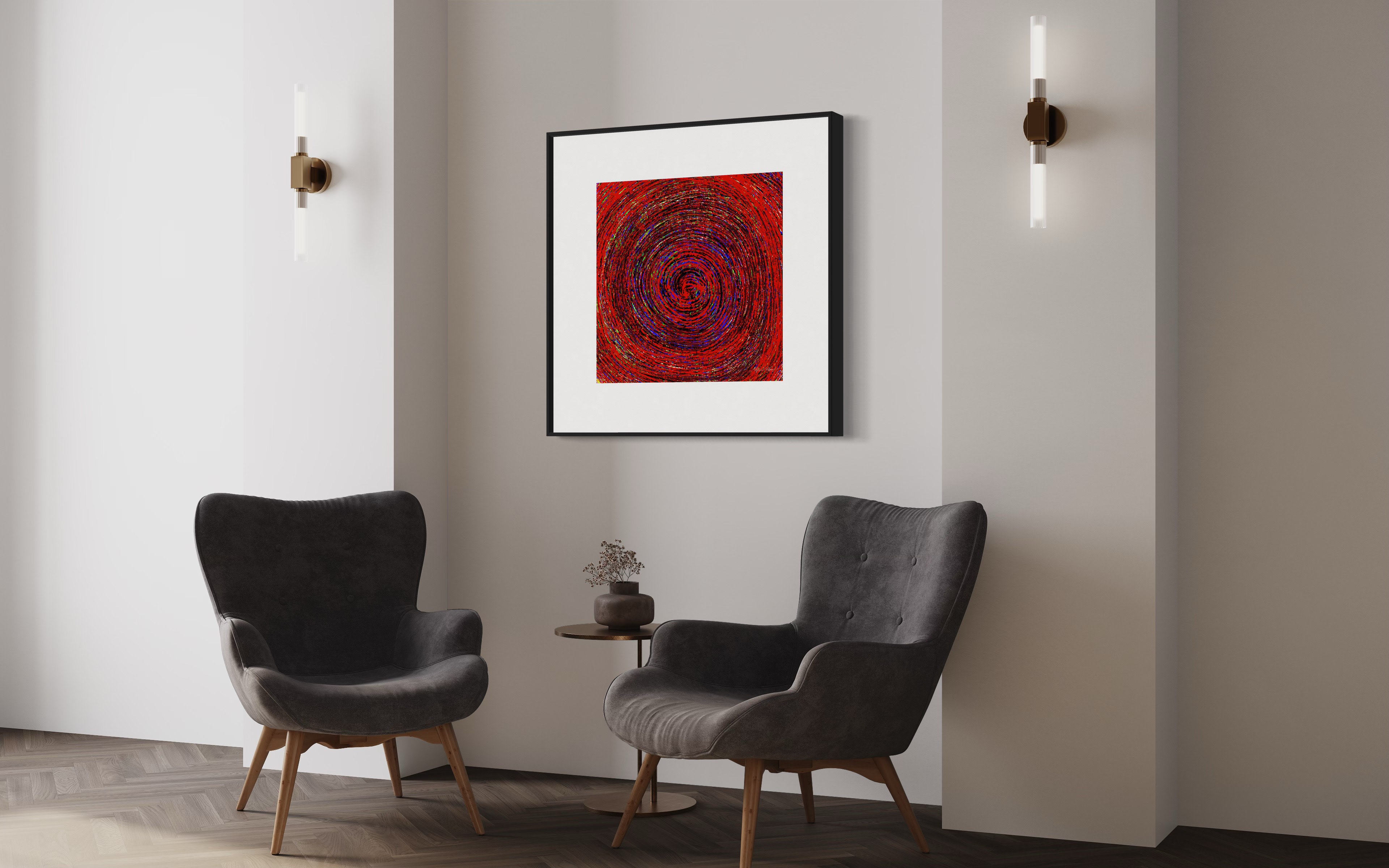 This piece can be printed on different support, such as fine art papers, acrylic, aluminium, etc. The high resolution also allows for printing different sizes.