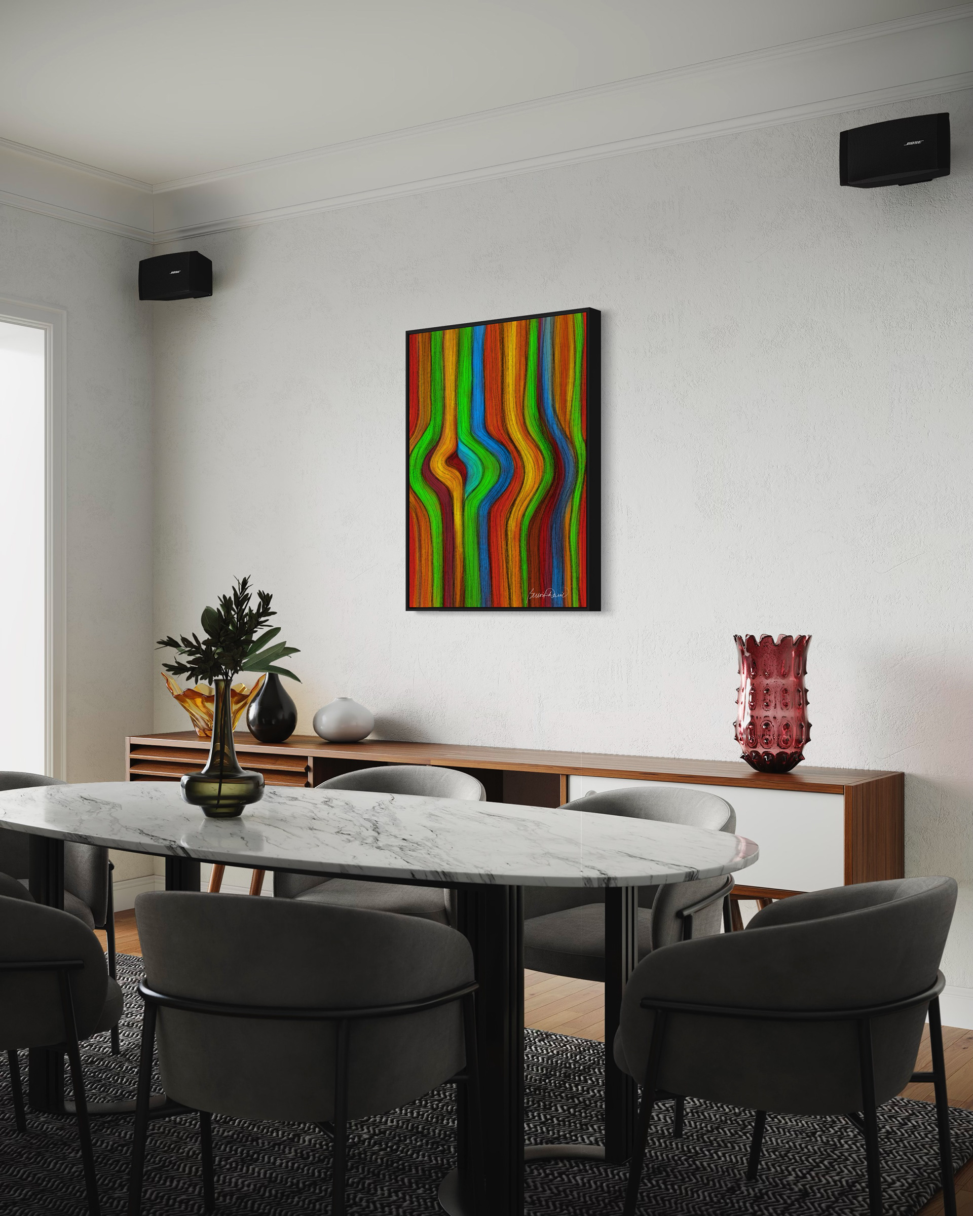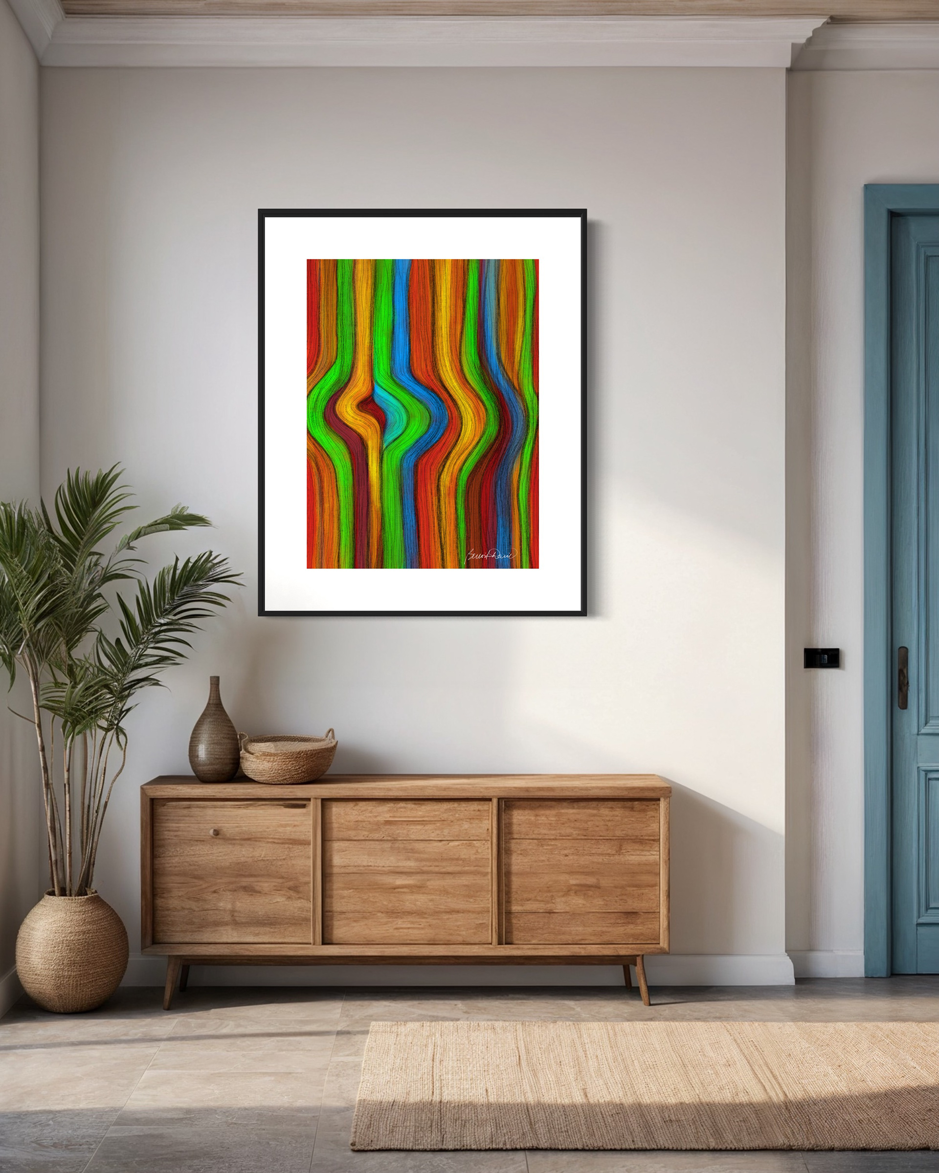 I'm excited to share my newest artwork, "Vibrant Tapestry." This 24x36 inch digital piece is bursting with color and movement, featuring wavy lines in blue, green, yellow, orange, and red. These colors weave together, symbolizing the beautiful and complex paths of life. This artwork is a reminder to embrace every emotion and challenge, finding beauty in every color and line. Creating it was fun, and I hope it brings joy and energy to everyone who sees it.